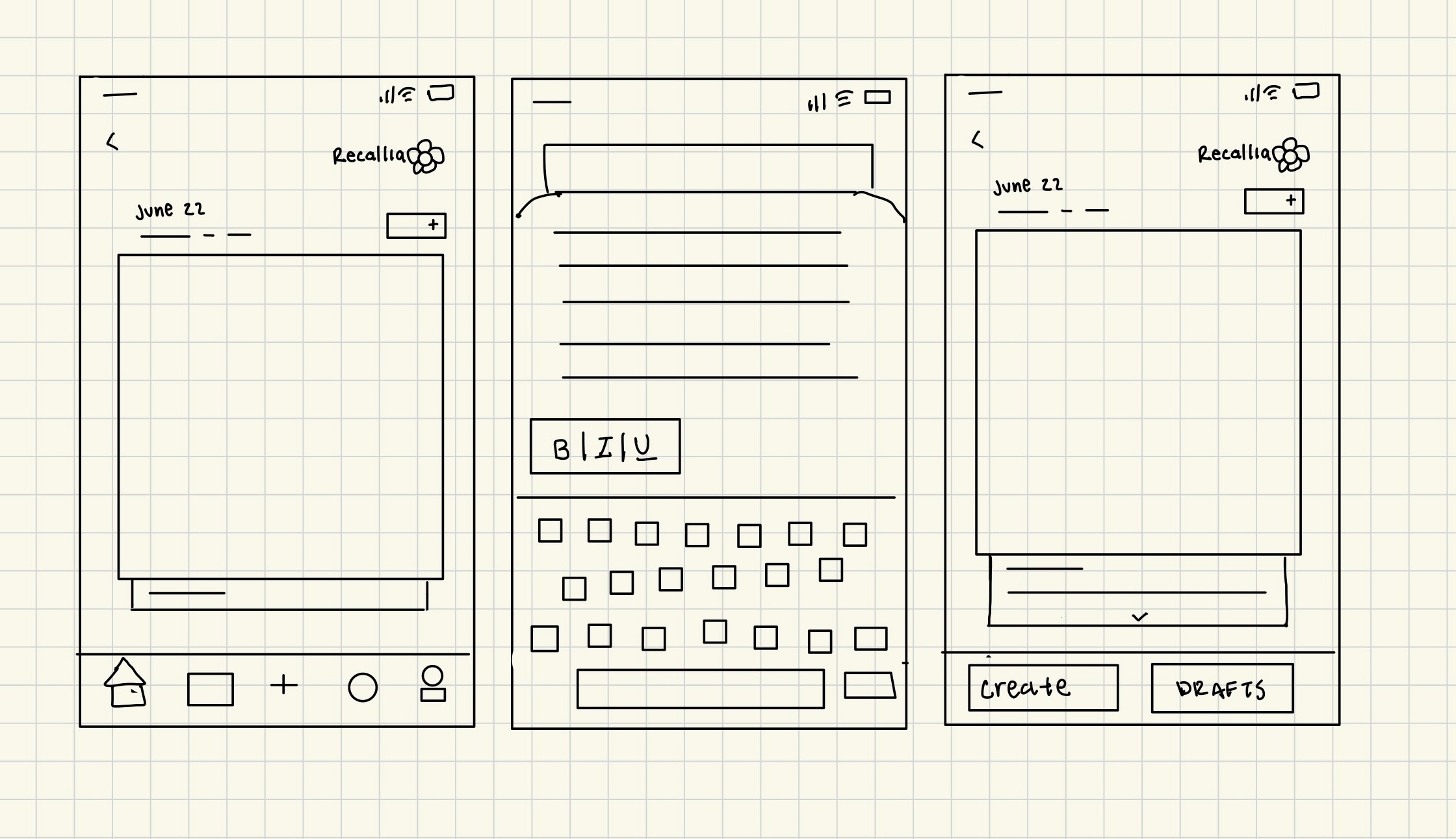 Low-Fidelity sketches of the feature screens. Moment screen (left), creating moment