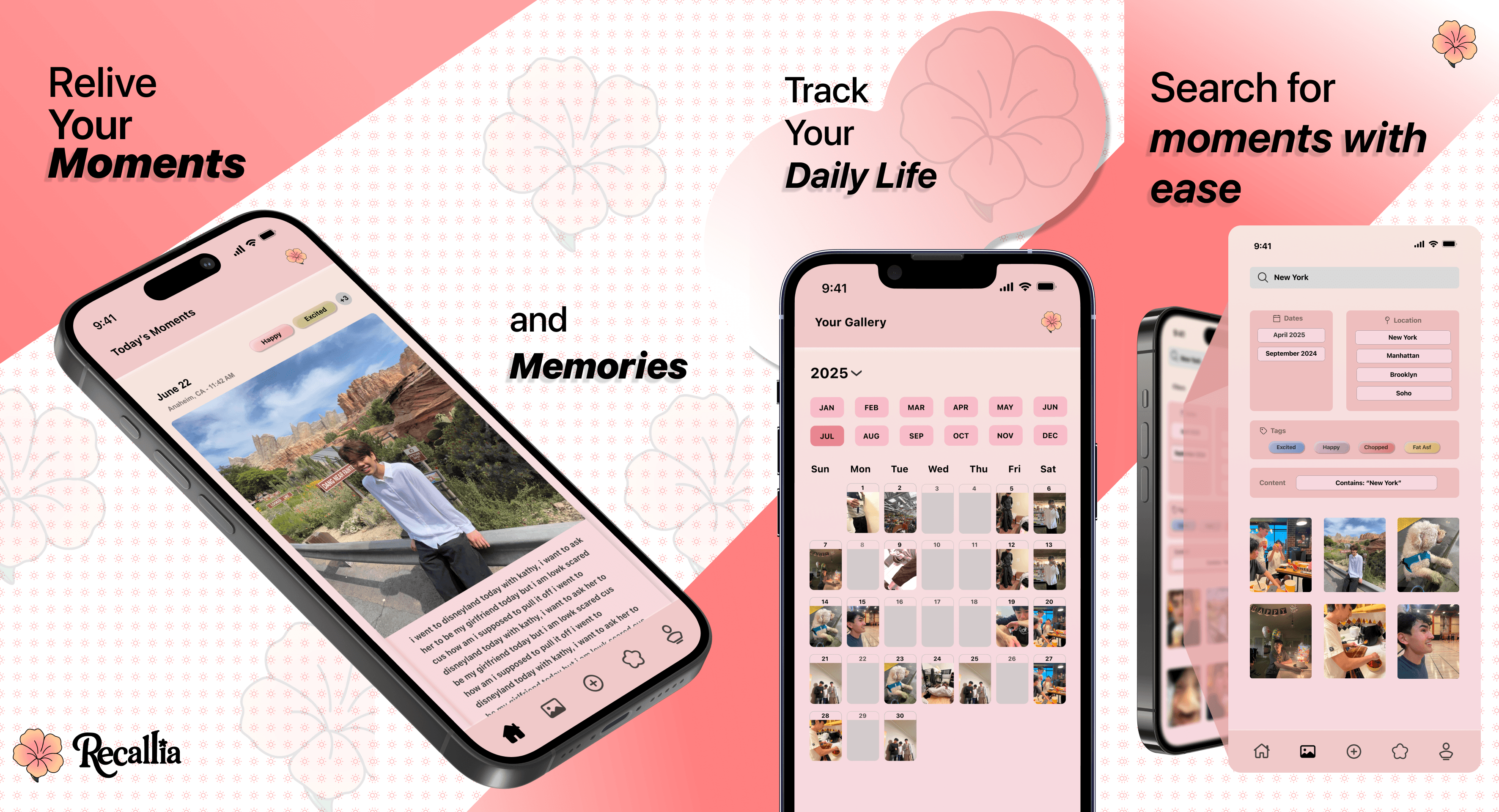 Recallia is built around you and your emotions, not algorithms. By combining photos with emotional reflections, the app gives you